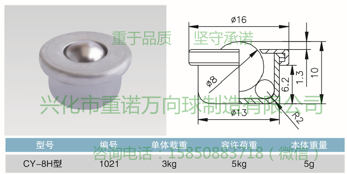 此款万向球为轻型冲压型万向球,标配外壳镀锌,主球选用G200级加硬球,硬度56HRC,质量上层,品质有保证,同款尺寸有全不锈钢型,镀锌外壳尼龙主球,或者不锈钢外壳配尼龙主球。