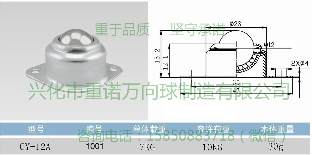 此款万向球为轻型冲压型万向球,标配外壳镀锌,主球选用G200级加硬球,硬度56HRC,质量上层,品质有保证,同款尺寸有全不锈钢型,镀锌外壳尼龙主球,或者不锈钢外壳配尼龙主球。
