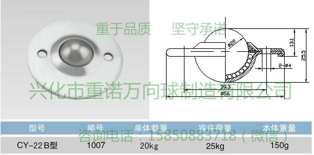 此款万向球为轻型冲压型万向球,标配外壳镀锌,主球选用G200级加硬球,硬度56HRC,质量上层,品质有保证,同款尺寸有全不锈钢型,镀锌外壳尼龙主球,或者不锈钢外壳配尼龙主球。
