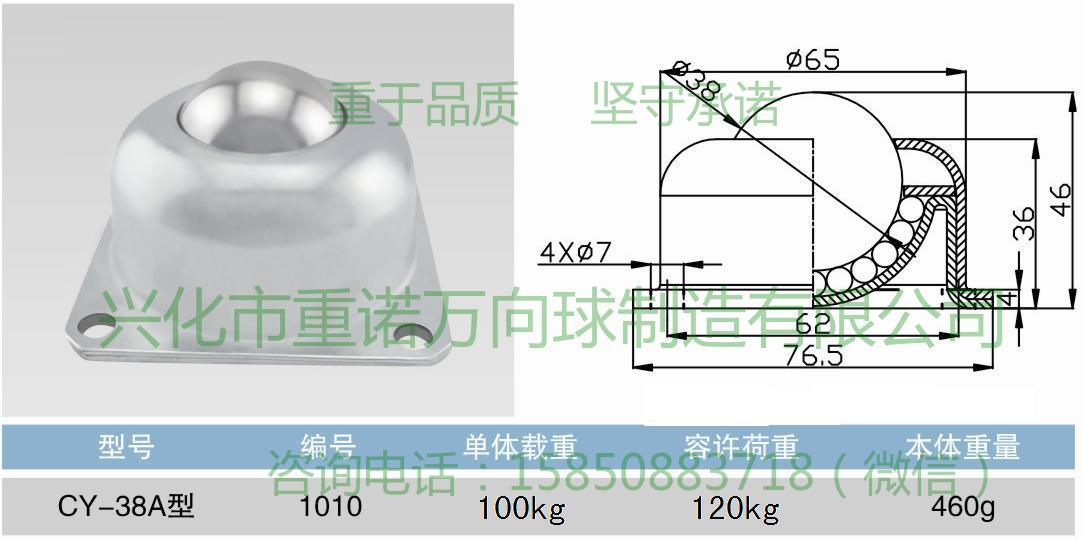 此款万向球为轻型冲压型万向球,标配外壳镀锌,主球选用G200级加硬球,硬度56HRC,质量上层,品质有保证,同款尺寸有全不锈钢型,镀锌外壳尼龙主球,或者不锈钢外壳配尼龙主球。