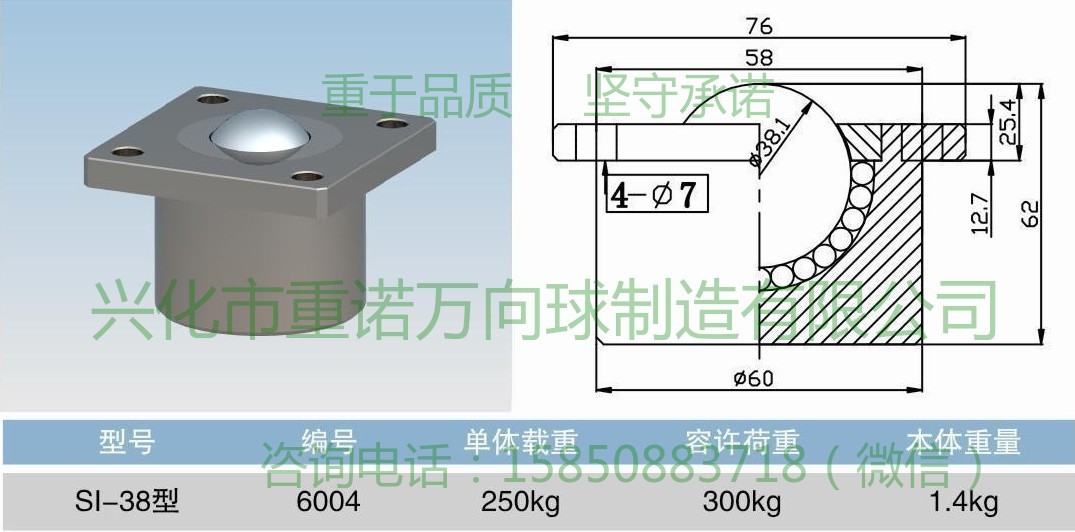 此款为朝上用系列的万向球,主要靠方底座上的螺纹孔固定于工作台面,安装时只需在工作台钻相应的螺纹安装孔就可以用螺丝安装固定,标配40Cr精车成型表面镀铬,球为轴承钢,可以选配主球尼龙球,或者全不锈钢型。