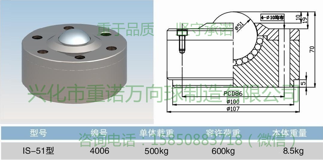此款为朝上用系列的万向球,主要靠下法兰上的螺纹孔固定于工作台面,强度比较高,安装时只需在工作台钻相应的螺纹安装孔就可以用螺丝安装固定,标配40Cr精车成型表面镀铬,球为轴承钢,可以选配主球尼龙球,或者全不锈钢型。