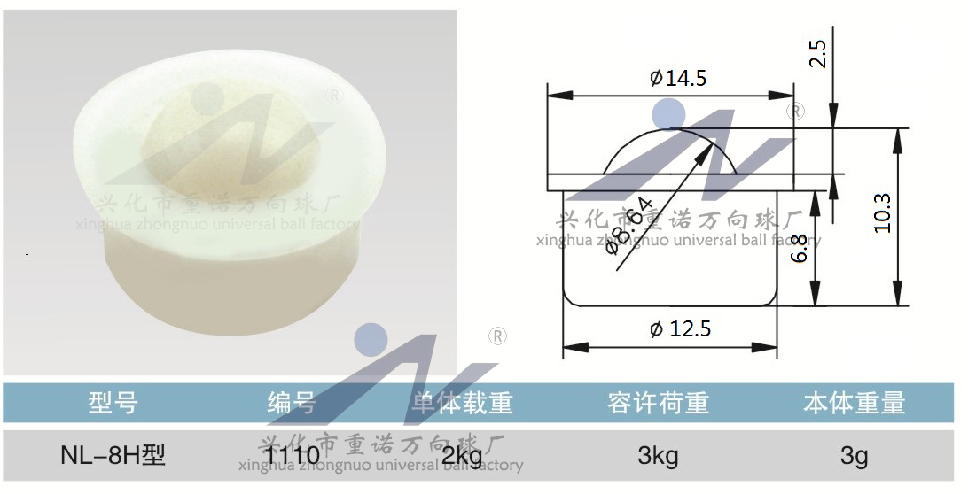 这款万向球为全工程塑料万向球,多用于潮湿,酸碱,以及食品,易碎品输送的场合,标配大滚珠为POM外壳为ABS,小滚珠为304不锈钢,球腔为304不锈钢板冲压成型,转动灵活,经久耐用。